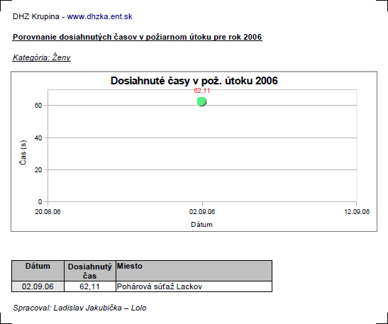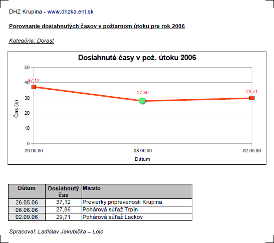 časov dosiahnutých v požiarnom útoku -
