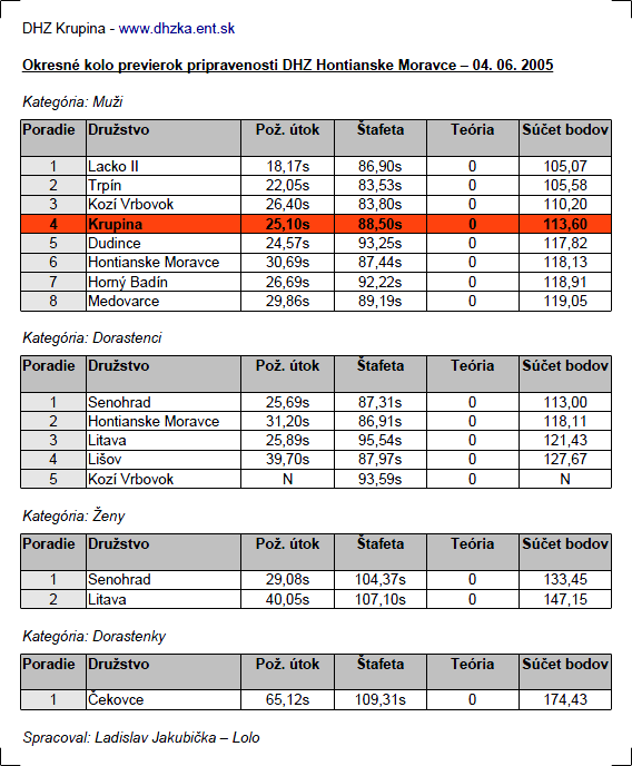 Okresné kolo previerok pripravenosti DHZ H. Moravce - 04.06.2005