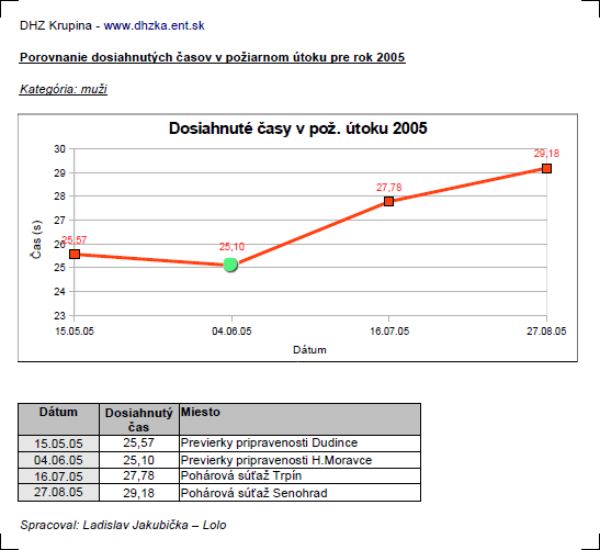 Porovnanie časov dosiahnutých v požiarnom útoku - kategória muži