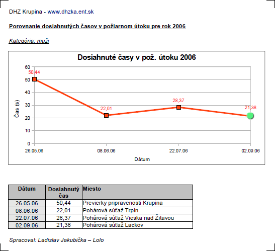 časov dosiahnutých v požiarnom útoku -