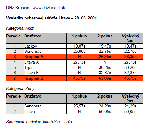 Pohárová súťaž Litava - 28.08.2004