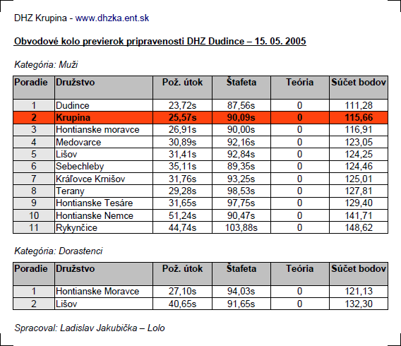 Obvodové kolo previerok pripravenosti DHZ Dudince - 15.05.2006
