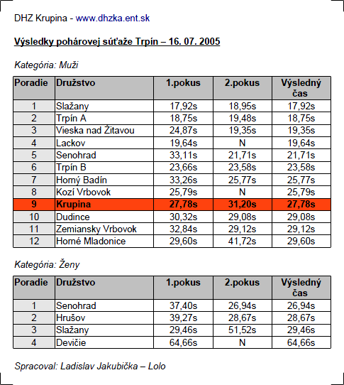 Okresné kolo previerok pripravenosti DHZ H. Moravce - 04.06.2005
